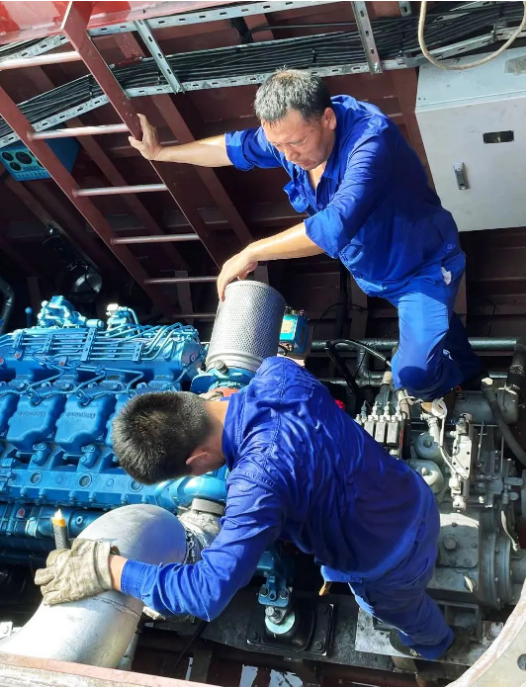 在悶熱且狹小的機(jī)艙內(nèi),一個簡單的動作,難度系數(shù)都要成倍增加,考驗的不僅是船舶電工的體力,還有毅力。