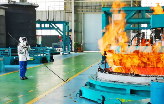 重齒公司熱處理車間,熱處理工人面對著高達(dá)800多度的熱處理爐,不懼高溫火焰,確保產(chǎn)品高質(zhì)量產(chǎn)出。