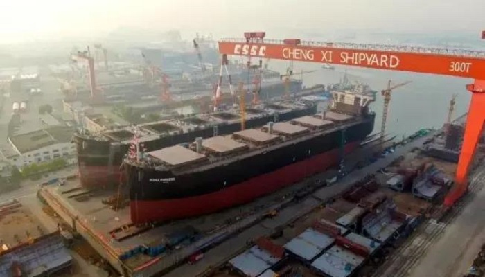 △ 中船澄西建造的7萬(wàn)噸木屑船順利下水(點(diǎn)擊圖片查看新聞詳情)