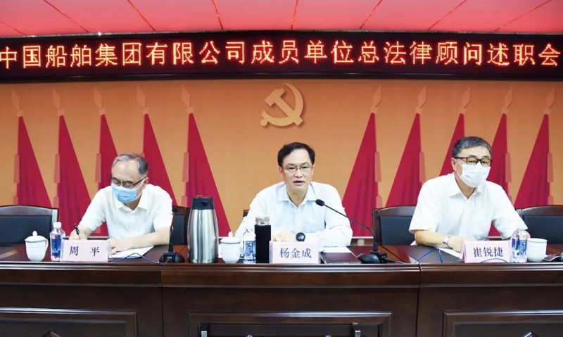 7月31日,中國船舶集團有限公司在武漢以視頻形式召開成員單位總法律顧問述職會議。中國船舶集團黨組副書記、總經(jīng)理楊金成出席會議并講話,對各成員單位總法律顧問2019年開展的工作給予充分肯定,并對下一步工作提出希望和要求。