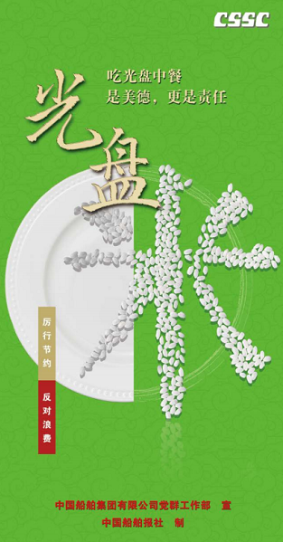 勤儉節(jié)約是中華民族的傳統(tǒng)美德,也是中國共產(chǎn)黨的優(yōu)良作風(fēng)。為深入貫徹落實習(xí)近平總書記重要指示精神,中國船舶集團黨組對制止餐飲浪費作出全面部署,要求集團公司廣大黨員干部在厲行節(jié)約、反對浪費方面走在前列、作出表率,大力弘揚勤儉節(jié)約的光榮傳統(tǒng)。