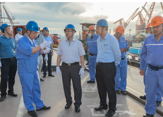 7月21日,工信部黨組成員、總工程師田玉龍到中國船舶集團有限公司大連地區(qū)成員單位調研指導工作。田玉龍一行先后到中國船舶集團第七六〇研究所、大連船舶重工集團有限公司實地考察了有關試驗場和在建船舶,聽取了兩家單位整體發(fā)展情況特別是科技創(chuàng)新方面的工作匯報,并對下一步工作提出要求。