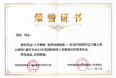 會議對2022年度國防科技工業(yè)新聞宣傳優(yōu)秀作品、優(yōu)秀案例、優(yōu)秀個人、優(yōu)秀組織代表進行現(xiàn)場表彰。中國船舶集團黨群工作部選送的《十年磨礪 筑夢向海圖強——紀念中國海軍遼寧艦入列10周年》獲評2022年度國防科技工業(yè)新聞宣傳優(yōu)秀作品、《中國船舶集團定點幫扶云南20年之全媒體——微博、抖音、微信、報紙走基層報道》獲評2022年度國防科技工業(yè)新聞宣傳優(yōu)秀案例,中國船舶集團旗下滬東中華張文豪獲評2022年度國防科技工業(yè)新聞宣傳優(yōu)秀個人,中國船舶集團旗下中國船舶報社獲評2022年度國防科技工業(yè)新聞宣傳優(yōu)秀組織。