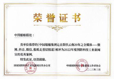 《中國船舶集團定點幫扶云南20年之全媒體——微博、抖音、微信、報紙走基層報道》通過微博、抖音、微信、報紙等全媒體平臺創(chuàng)新形式,將軍工央企宣傳報道助力脫貧攻堅、推進鄉(xiāng)村振興、踐行社會責任優(yōu)秀成果提升到一個全新的媒體融合報道領(lǐng)域。