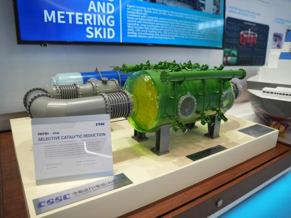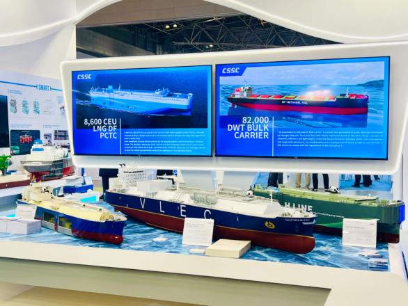 展會期間,國產大型郵輪、17.4萬立方米LNG船、8600車LNG雙燃料PCTC、9.9萬立方米VLEC、WinGD 9X92DF-2.0(-iCER)主機、船用LNG 供氣系統、船用碳捕捉系統、大口徑岸基智能裝卸系統等代表性產品悉數亮相,獲得海外市場高度關注。