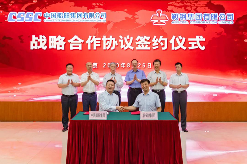 8月26日,中國船舶集團(tuán)有限公司與鞍鋼集團(tuán)有限公司在京簽署戰(zhàn)略合作協(xié)議。中國船舶集團(tuán)黨組書記、董事長雷凡培,黨組成員、副總經(jīng)理馮永強(qiáng),鞍鋼集團(tuán)黨委書記、董事長譚成旭,黨委副書記、總經(jīng)理戴志浩出席簽約儀式。中國船舶集團(tuán)黨組成員、副總經(jīng)理孫偉,鞍鋼集團(tuán)黨委常委、副總經(jīng)理王義棟分別代表雙方在協(xié)議上簽字。