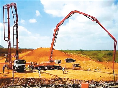 圖為三一重工的工程機(jī)械設(shè)備在肯尼亞蒙內(nèi)鐵路建設(shè)現(xiàn)場施工。