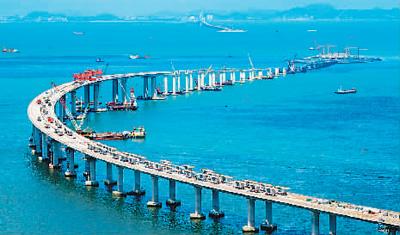 港珠澳大橋主體工程全線貫通,是中國橋梁屹立世界“橋梁之巔”的縮影。世界最長跨海大橋、跨度最大的公鐵兩用橋、首座公鐵兩用跨海大橋……近年來,中國橋梁界為世界橋梁創(chuàng)造了眾多的“世界第一”。數(shù)據(jù)顯示,目前世界排名前10位的跨海長橋中,中國占據(jù)6座。而在建造技術(shù)上,中國已擁有千米級斜拉橋設(shè)計(jì)施工成套技術(shù)、跨海特大跨徑鋼箱梁懸索橋關(guān)鍵技術(shù)等多項(xiàng)尖端技術(shù)。