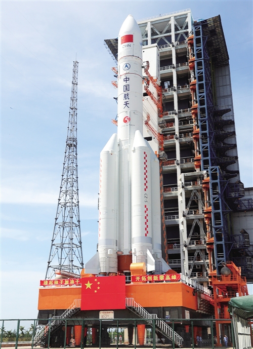 在海南文昌航天發(fā)射場(chǎng)拍攝的長(zhǎng)征五號(hào)遙二火箭。 張文軍攝 (新華社發(fā))