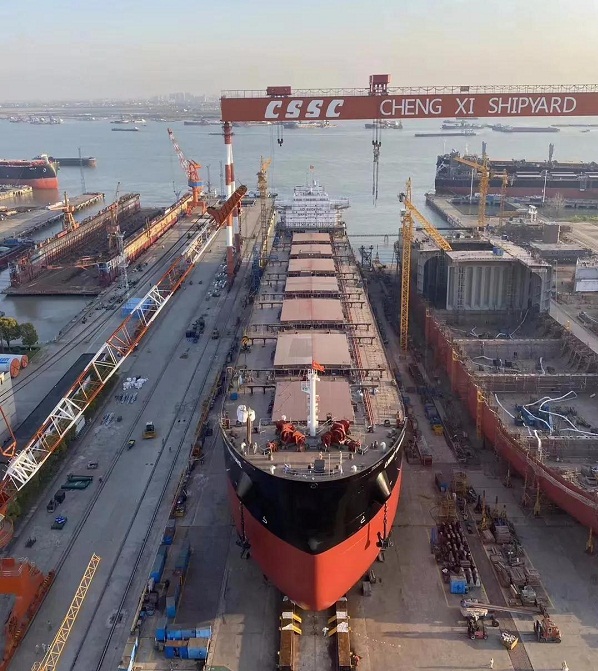 ????4月7日,中國船舶集團旗下中船澄西為香港華光船務(wù)建造的42號8.2萬噸散貨船,在中船澄西揚州公司下水。該船下水整體完整性較好,船體工程、輪機工程、電氣工程等多項工程基本完工,為水下全船設(shè)備安裝調(diào)試打下了堅實基礎(chǔ)。