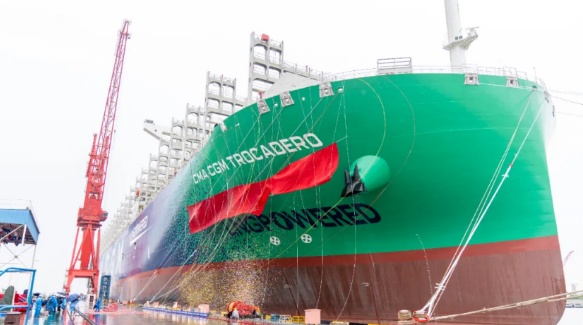 2017年9月,中國船舶集團(tuán)與法國達(dá)飛集團(tuán)簽署九艘23000TEU超大型集裝箱船建造合同,截至目前,已交付八艘。 該系列船均由中國船舶集團(tuán)七〇八所自主研發(fā)設(shè)計(jì),是首次引入液化天然氣雙燃料系統(tǒng)的超大型集裝箱船。因?yàn)樗执笥汁h(huán)保,是名副其實(shí)的海上“巨無霸”,我們都叫它“綠巨人”!