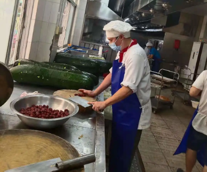 不僅是日常三餐,在遇上臨時性訂單增加時,飲食服務(wù)部還要加班加點趕制食品做好配送,確保食品準(zhǔn)時送達(dá)。同時,他們還堅持為一線防疫人員提供清涼飲品,讓高溫下辛苦工作的防疫人員獲得一絲清涼。