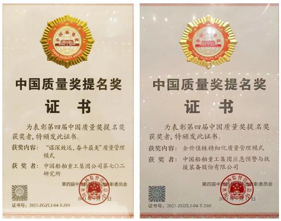 9月16日,在中國質(zhì)量(杭州)大會上,第四屆中國質(zhì)量獎評選結(jié)果揭曉,中國船舶集團旗下七〇二所、中船應急分別以“謀深致遠,奮斗最美”質(zhì)量管理模式、全價值鏈精細化質(zhì)量管理模式,榮獲第四屆中國質(zhì)量獎提名獎。