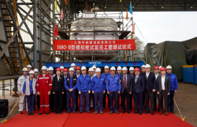 該B型模擬艙艙容為48立方米,艙室及氣室外形和節(jié)點(diǎn)型式皆與實(shí)船艙型保持一致,材質(zhì)為9NI鋼。本次模擬艙建造完工,驗(yàn)證了外高橋造船自主完成B型艙的設(shè)計(jì)、生產(chǎn)制造和質(zhì)量控制等全流程的能力,為實(shí)船建造打下堅(jiān)實(shí)基礎(chǔ)。