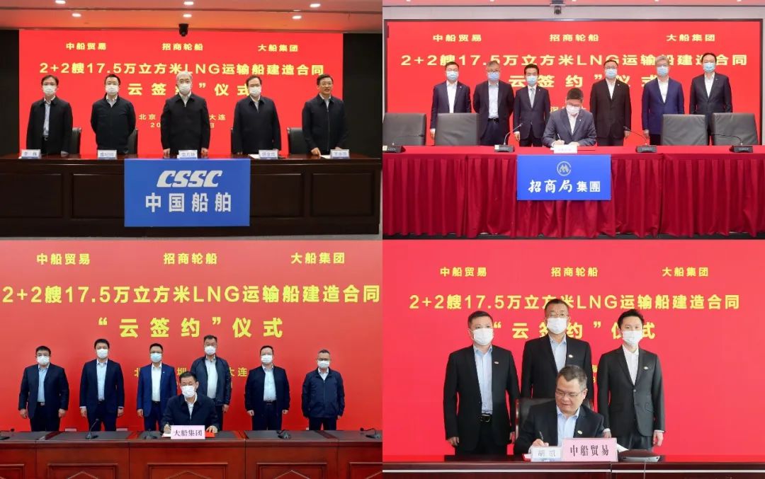3月31日,中國(guó)船舶集團(tuán)有限公司旗下大船集團(tuán)聯(lián)合中船貿(mào)易與招商局集團(tuán)有限公司旗下招商輪船在上海、深圳、大連及北京四地以“云簽約”方式簽署2+2艘17.5萬(wàn)立方米大型液化天然氣(LNG)運(yùn)輸船建造合同。中國(guó)船舶集團(tuán)黨組書(shū)記、董事長(zhǎng)雷凡培,黨組副書(shū)記、總經(jīng)理?xiàng)罱鸪桑h組成員、副總經(jīng)理盛紀(jì)綱,招商局集團(tuán)董事長(zhǎng)繆建民、總經(jīng)理胡建華、董事王宏出席簽約儀式。雷凡培、繆建民在儀式上致辭。