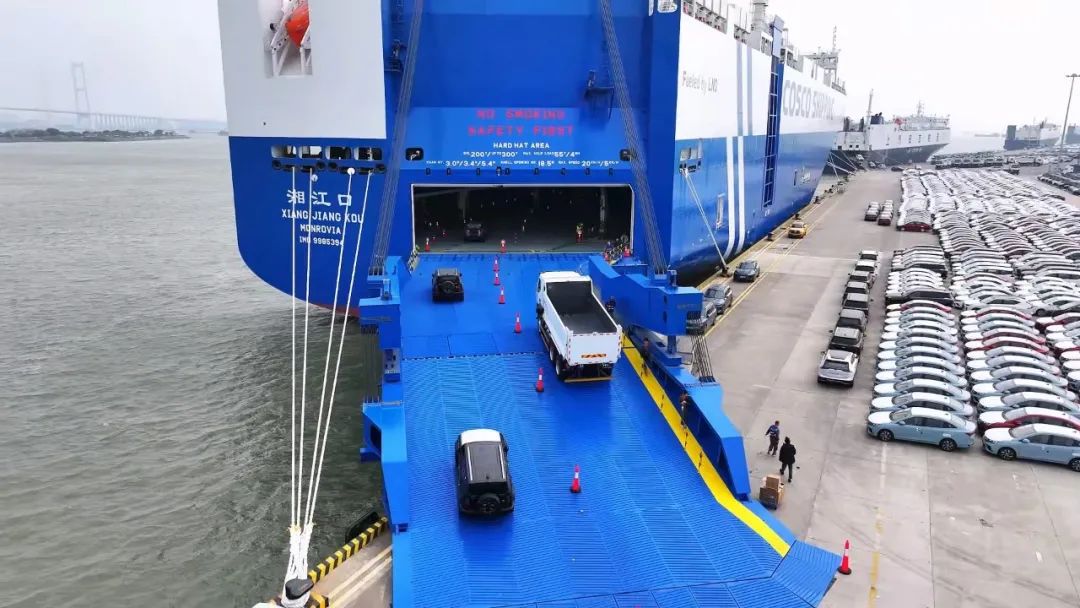 2024年12月14日, LNG雙燃料汽車運(yùn)輸船“湘江口”輪首航靠泊廣州南沙汽車口岸,搭載一汽、吉利、奇瑞、長城、上汽、比亞迪等10余個(gè)國產(chǎn)品牌的近4000臺各型車輛出口駛往波斯灣市場?!跋娼凇陛喌募尤耄瑢⒏旄玫胤?wù)“一帶一路”經(jīng)貿(mào)往來,為全球汽車海運(yùn)市場注入新的活力。