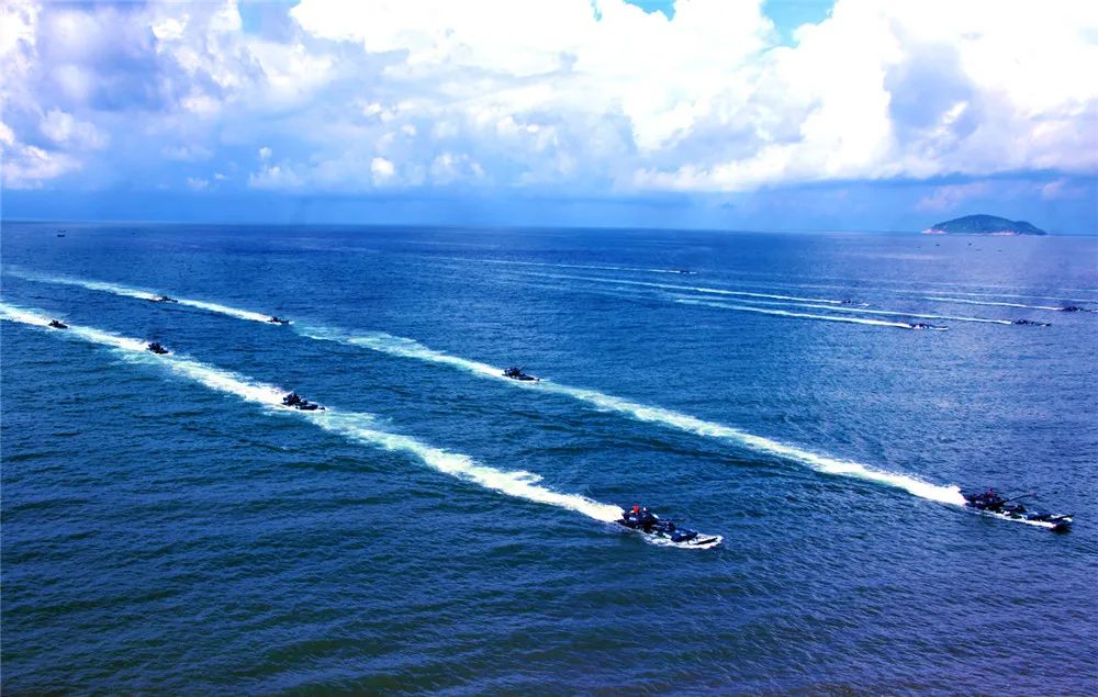 如今的人民海軍艦陣如虹、白浪如練