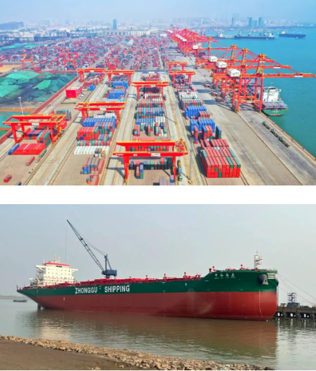 在公開(kāi)照片中,與習(xí)近平總書(shū)記“同框”的,正是中國(guó)船舶集團(tuán)旗下武漢船機(jī)、七一六所參與建設(shè)的日照港順岸開(kāi)放式全自動(dòng)化集裝箱碼頭,以及上船院設(shè)計(jì)、汾西重工提供關(guān)鍵配套的4600箱集裝箱船“中谷南昌”號(hào)。