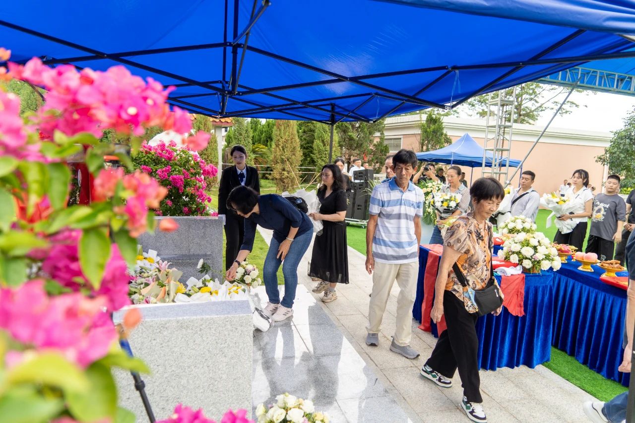 紅海灣經(jīng)濟(jì)開(kāi)發(fā)區(qū)抗日英烈陵園旁,三角梅簇?fù)碇S旭華院士的墓,墓地四周松柏蒼勁挺拔。