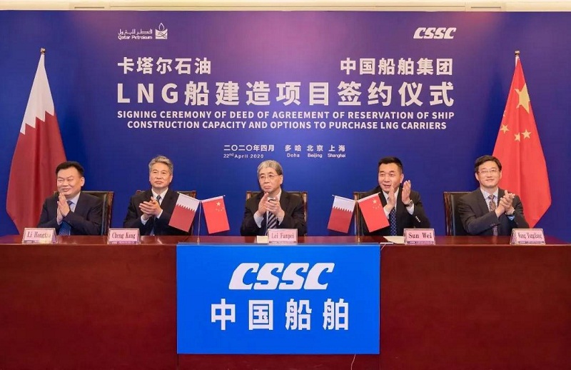 ????4月22日,中國船舶集團與卡塔爾石油公司在中國北京、上海及卡塔爾多哈三地以“云簽約”方式聯(lián)合簽署“中國船舶—卡塔爾石油液化天然氣(LNG)船建造項目”協(xié)議,所涉訂單總金額超過200億元人民幣。這是卡塔爾天然氣項目首批訂單,也是中國船企迄今承接的金額最大的造船出口訂單。中國船舶集團和卡塔爾石油將強強聯(lián)手,依托各自優(yōu)勢在能源運輸、裝備制造及全球化服務等領域開展廣泛合作。
