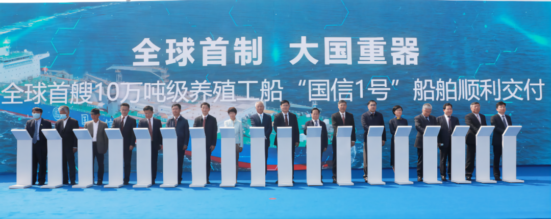 5月20日,中國(guó)船舶集團(tuán)旗下青島北海造船有限公司為青島國(guó)信發(fā)展(集團(tuán))有限責(zé)任公司建造的全球首艘10萬(wàn)噸級(jí)智慧漁業(yè)大型養(yǎng)殖工船“國(guó)信1號(hào)”交船命名儀式在青島舉行。中國(guó)船舶集團(tuán)黨組書(shū)記、董事長(zhǎng)雷凡培,黨組成員、副總經(jīng)理孫偉通過(guò)視頻出席儀式,山東省人民政府黨組成員、副省長(zhǎng)凌文,青島市委副書(shū)記、市長(zhǎng)趙豪志,中國(guó)海洋大學(xué)黨委副書(shū)記、校長(zhǎng)于志剛,中國(guó)工程院院士麥康森等領(lǐng)導(dǎo)和嘉賓出席儀式。青島市副市長(zhǎng)趙燕為新船命名。