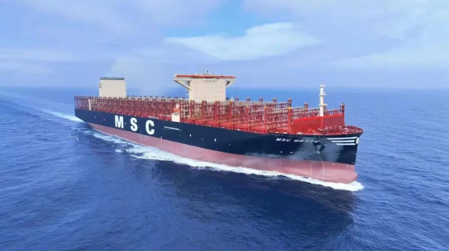 江南造船為地中海航運(yùn)建造的24000TEU集裝箱船“地中海梅特”號(hào)