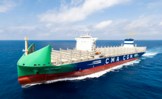 滬東中華為法國(guó)達(dá)飛海運(yùn)建造的13000TEU雙燃料動(dòng)力集裝箱船“CMA CGM BAHIA”號(hào)