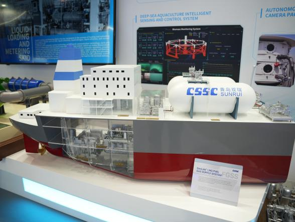 展會期間,國產大型郵輪、17.4萬立方米LNG船、8600車LNG雙燃料PCTC、9.9萬立方米VLEC、WinGD 9X92DF-2.0(-iCER)主機、船用LNG 供氣系統、船用碳捕捉系統、大口徑岸基智能裝卸系統等代表性產品悉數亮相,獲得海外市場高度關注。