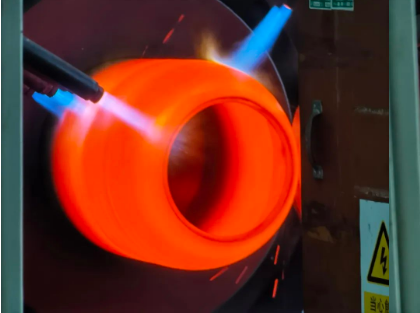 “在1180℃的高溫下,我們可以把直徑385毫米~660毫米的特種鋼管,變成兩端為球面封頭的無縫高壓氣瓶?!睂<医榻B。