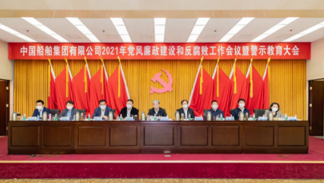 1月29日,中國(guó)船舶集團(tuán)有限公司召開(kāi)2021年黨風(fēng)廉政建設(shè)和反腐敗工作會(huì)議暨警示教育大會(huì),總結(jié)2020年黨風(fēng)廉政建設(shè)和反腐敗工作,開(kāi)展警示教育,部署2021年重點(diǎn)任務(wù)。會(huì)議強(qiáng)調(diào),要以習(xí)近平新時(shí)代中國(guó)特色社會(huì)主義思想為指導(dǎo),全面貫徹落實(shí)習(xí)近平總書(shū)記重要指示,認(rèn)真貫徹落實(shí)黨的十九大和十九屆二中、三中、四中、五中全會(huì)精神,深入貫徹落實(shí)十九屆中央紀(jì)委五次全會(huì)以及國(guó)資委黨風(fēng)廉政建設(shè)和反腐敗工作會(huì)議暨警示教育大會(huì)精神,堅(jiān)決貫徹全面從嚴(yán)治黨方針,充分發(fā)揮全面從嚴(yán)治黨引領(lǐng)保障作用,堅(jiān)定政治方向,保持政治定力,按照態(tài)度不能變、決心不能減、尺度不能松的要求,推進(jìn)黨風(fēng)廉政建設(shè)和反腐敗工作,為集團(tuán)公司實(shí)現(xiàn)“十四五”高質(zhì)量發(fā)展良好開(kāi)局和加快建設(shè)世界一流船舶集團(tuán)提供堅(jiān)強(qiáng)保障,以?xún)?yōu)異成績(jī)慶祝中國(guó)共產(chǎn)黨成立100周年。