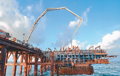 7月6日,隨著主橋23號墩承臺(tái)最后一車混凝土的澆筑,中國援馬爾代夫中馬友誼大橋5個(gè)主橋承臺(tái)全部施工完成,標(biāo)志著占全橋施工總量約70%的主橋部分從此徹底擺脫印度洋的強(qiáng)涌浪襲擾,進(jìn)入上部結(jié)構(gòu)施工階段。