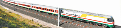 2016年10月3日,在埃塞俄比亞首都亞的斯亞貝巴附近,一列試運(yùn)行列車在亞吉鐵路上行駛。新華社記者 孫瑞博攝