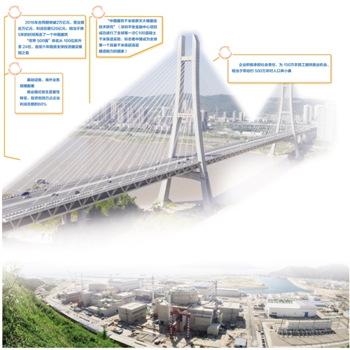 黨的十八大以來的5年,中國建筑連續(xù)5次獲得國務院國資委中央企業(yè)負責人經(jīng)營業(yè)績考核A級,任期考核蟬聯(lián)“業(yè)績優(yōu)秀企業(yè)”榮譽稱號;5年來,中國建筑在財富“世界500強”排名從100位躍升至24位;5年來,中國建筑連續(xù)穩(wěn)居全球投資建設集團之首,獲得標普、穆迪、惠譽等國際三大評級機構信用評級A級,為全球建筑行業(yè)最高信用評級。自1982年組建以來,中國建筑實現(xiàn)“每10年多環(huán)比增長10倍”的快速發(fā)展目標。2016年,中國建筑合同額突破2萬億、營業(yè)額近萬億、利潤總額520億,營業(yè)收入、利潤總額分別位居國務院國資委管理的中央企業(yè)第4位、第5位,相當于用5年的時間再造了一個中國建筑。