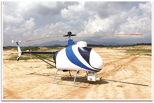 圖為南方電網(wǎng)廣東電力科學(xué)研究院自主研發(fā)的巡線無(wú)人直升機(jī)。(張建軍 攝)