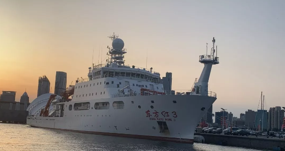 “東方紅3”號(hào)是我國(guó)自主創(chuàng)新研發(fā)的新一代深海大洋綜合科學(xué)考察實(shí)習(xí)船,2013年由教育部立項(xiàng)建設(shè),2019年6月交付使用,是國(guó)內(nèi)首艘、國(guó)際上第四艘獲得DNV GL簽發(fā)的船舶水下輻射噪聲最高等級(jí)——靜音科考級(jí)(SILENT-R)證書的海洋綜合科考船,也是世界上獲得這一等級(jí)證書排水量最大的海洋綜合科考船。