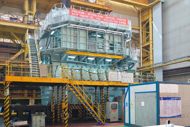????今天給大家介紹一個(gè)輕盈又智能的船舶發(fā)動(dòng)機(jī)。近日,中國(guó)船舶集團(tuán)旗下中國(guó)船柴建造的首臺(tái)MAN-DMD 6S60ME-C10.5智能電控主機(jī)成功交驗(yàn)。MAN-DMD 6S60ME-C10.5主機(jī)是電噴共軌智能柴油機(jī),該機(jī)功率為9000千瓦、12328馬力,滿足國(guó)際海事組織TII排放標(biāo)準(zhǔn),將安裝在82000噸散貨船上。