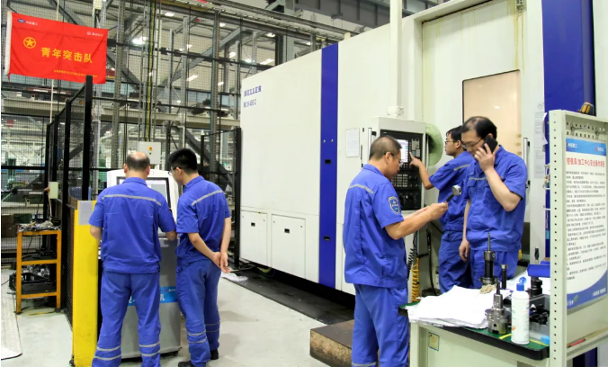 凌晨三點的中國船舶集團旗下重慶紅江聯(lián)合廠房,室外,三伏天近40℃的高溫帶來的酷熱并沒有因入夜而降下來;室內(nèi),機床轟響燈火通明,一號車間最先進的三臺臥式加工中心開足馬力全速運轉。