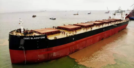 3月29日,中國(guó)船舶集團(tuán)旗下上海船院負(fù)責(zé)詳細(xì)設(shè)計(jì)、黃埔文沖建造的第4艘12萬(wàn)噸散貨船“CSSC GLADSTONE”號(hào)交付。