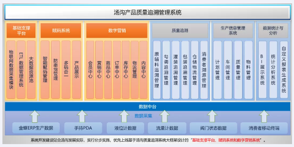 涵蓋供應(yīng)鏈管理、訂單管理、生產(chǎn)計(jì)劃排程、生產(chǎn)過(guò)程管控、智慧倉(cāng)儲(chǔ)、智慧物流、數(shù)字營(yíng)銷(xiāo)、質(zhì)量追溯及數(shù)據(jù)決策等企業(yè)生產(chǎn)經(jīng)營(yíng)全流程的產(chǎn)品質(zhì)量溯源大平臺(tái);