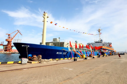 2020年,中國船舶集團(tuán)旗下大船集團(tuán)將散貨船改裝而成的“民德”號交付。這是全球首制、具有完全自主知識產(chǎn)權(quán)的舷側(cè)開孔式養(yǎng)殖工船,具有魚類養(yǎng)殖、餌料加工、活魚運(yùn)輸?shù)裙δ堋=淮耐瑫r,大船集團(tuán)與東方漁業(yè)簽約10+8艘大型養(yǎng)殖工船項(xiàng)目。