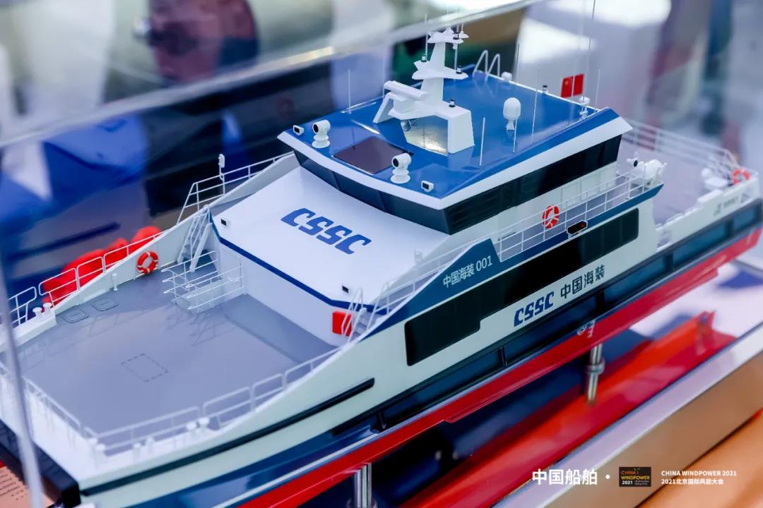 在本屆風(fēng)能大會(huì)上,中國(guó)海裝與遠(yuǎn)舟科技聯(lián)合設(shè)計(jì)制造的國(guó)內(nèi)首艘30米級(jí)專(zhuān)業(yè)風(fēng)電運(yùn)維船發(fā)布。投運(yùn)后,該船將與中船海工101海上風(fēng)電安裝平臺(tái)一道,為海上運(yùn)維“保駕護(hù)航”。
