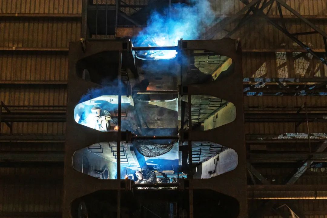 年終將至,江南造船吹響了沖刺的號角,生產(chǎn)全面加速,捷報接連而來,最近一個月,86000 m3VLGC、3600車PCTC完工交船,15000TEU集裝箱船、99000m3 VLEC相繼出塢,2200TEU支線箱船圓滿收官。最后一個月,江南造船各部門圍繞高質(zhì)量保交船的目標(biāo),制定相應(yīng)方案,緊盯標(biāo)準(zhǔn)周期,踏準(zhǔn)生產(chǎn)節(jié)點,實現(xiàn)節(jié)拍化建造,確保年度目標(biāo)按期順利達成,打贏年底收官戰(zhàn)。