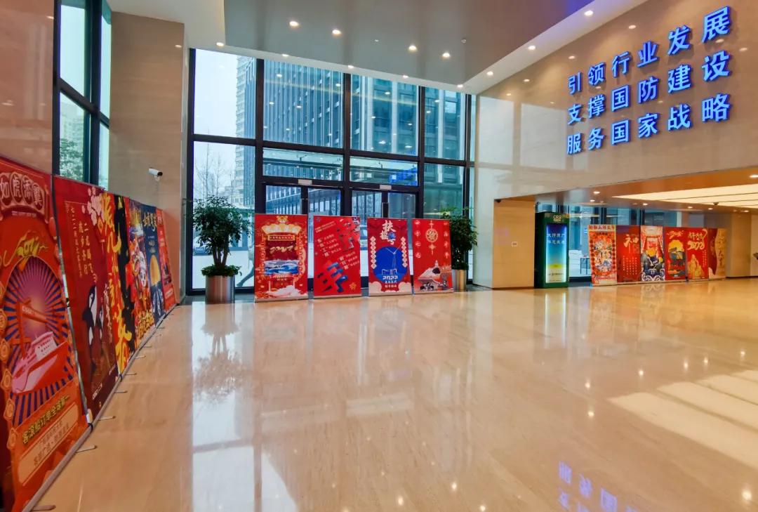 節(jié)日的煙花詮釋喜慶,大紅的燈籠點(diǎn)亮祝福!黃旭華院士作為七一九所典型人物代表,認(rèn)真注視著他為之奉獻(xiàn)一生的艇,也反映了這條戰(zhàn)線上科技工作者們“團(tuán)結(jié)、求實(shí)、創(chuàng)新、奉獻(xiàn)”的工作作風(fēng)?!盀榫粨?鵬摶九天”暗藏“一九”二字,反映出七一九所肩負(fù)的責(zé)任之大,使命之重,表達(dá)了軍工人將船舶事業(yè)做大做強(qiáng)的決心。