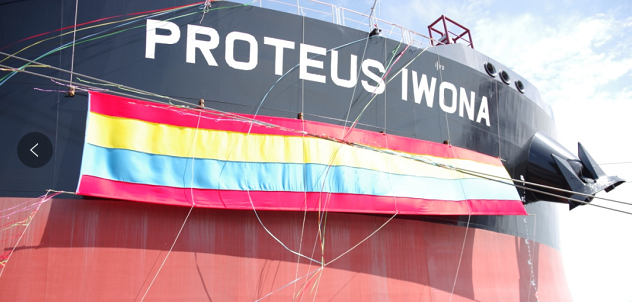 “普羅透斯?伊沃娜”號(PROTEUS IWONA)是外高橋造船為交銀租賃建造的第2艘10.9萬載重噸阿芙拉型雙燃料成品油船。首制船“PROTEUS JESSICA”號于8月交付。