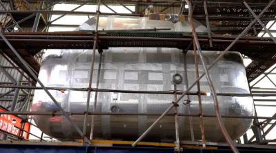 該B型模擬艙艙容為48立方米,艙室及氣室外形和節(jié)點(diǎn)型式皆與實(shí)船艙型保持一致,材質(zhì)為9NI鋼。本次模擬艙建造完工,驗(yàn)證了外高橋造船自主完成B型艙的設(shè)計(jì)、生產(chǎn)制造和質(zhì)量控制等全流程的能力,為實(shí)船建造打下堅(jiān)實(shí)基礎(chǔ)。