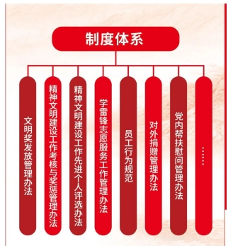 把精神文明建設(shè)作為全面推進單位發(fā)展的重要保障,與中心工作同謀劃、同部署、同檢查、同落實,通過體系化、制度化、規(guī)范化建設(shè),形成“黨委統(tǒng)一領(lǐng)導,文明辦歸口管理,職能部門協(xié)同負責,全員共同參與”的工作格局。建立法治誠信建設(shè)、行為文明規(guī)范、創(chuàng)建考核與評先等管理辦法,形成科學完備的制度體系,推動創(chuàng)建工作科學化、制度化、規(guī)范化。