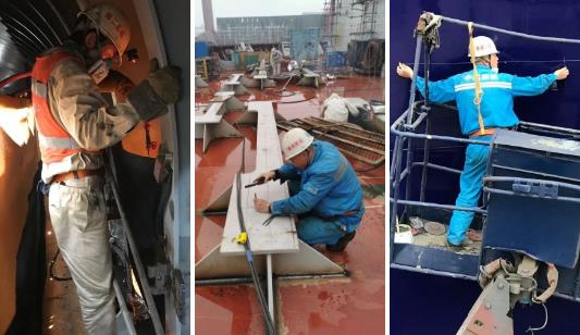 ????疫情期間,為了追趕出塢節(jié)點(diǎn),江南造船建造團(tuán)隊(duì)積極與外籍船東監(jiān)造組成員和服務(wù)商溝通,嘗試自主施工并細(xì)化監(jiān)督措施