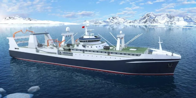 由七〇一所武船院設(shè)計(jì)的該系列南極磷蝦捕撈加工船排水量近2萬噸,采用先進(jìn)的連續(xù)捕撈系統(tǒng)及現(xiàn)代化生產(chǎn)流水線,是我國目前已啟動(dòng)最大最先進(jìn)的南極磷蝦捕撈加工船,建成后將填補(bǔ)我國在南極磷蝦高端漁船設(shè)計(jì)領(lǐng)域的空白,為我國開發(fā)南極磷蝦產(chǎn)品提供裝備保障。