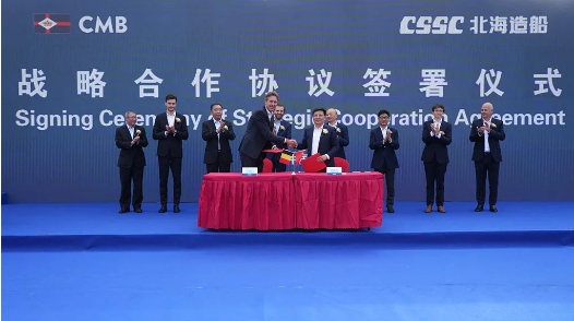 北海造船與比利時CMB.TECH公司簽署戰(zhàn)略合作協(xié)議。雙方將秉持優(yōu)勢互補、互利共贏的態(tài)度,持續(xù)拓展合作深度與廣度,聚焦市場推出綠色燃料船,共同研發(fā)低碳和零排放技術,為打造國際綠色航運新生態(tài)作出更大貢獻。