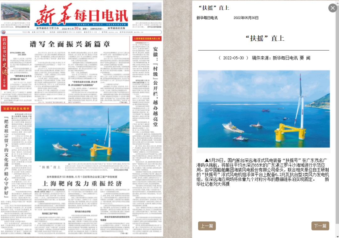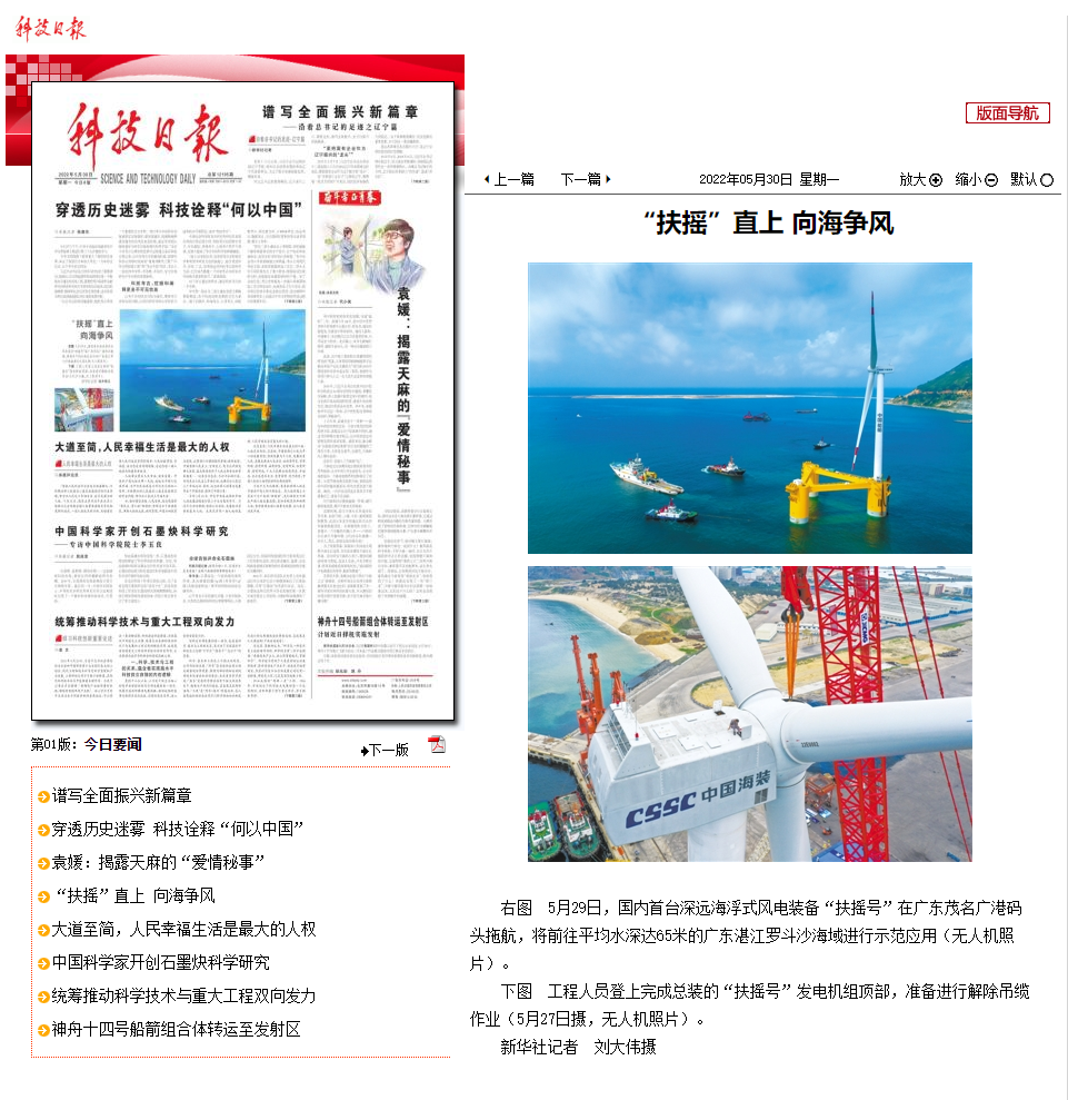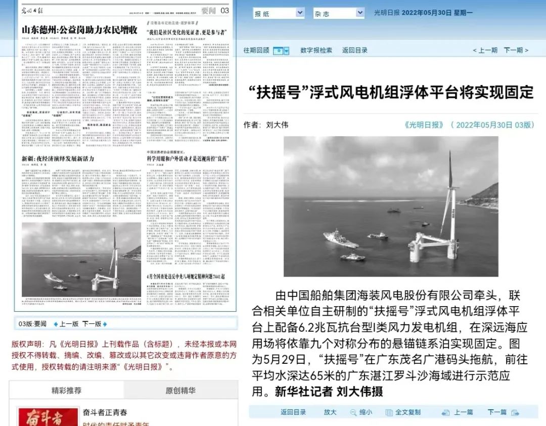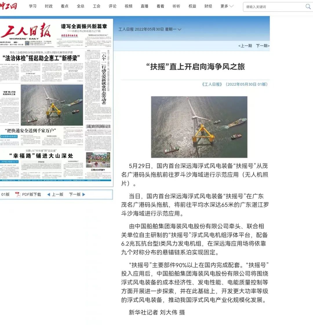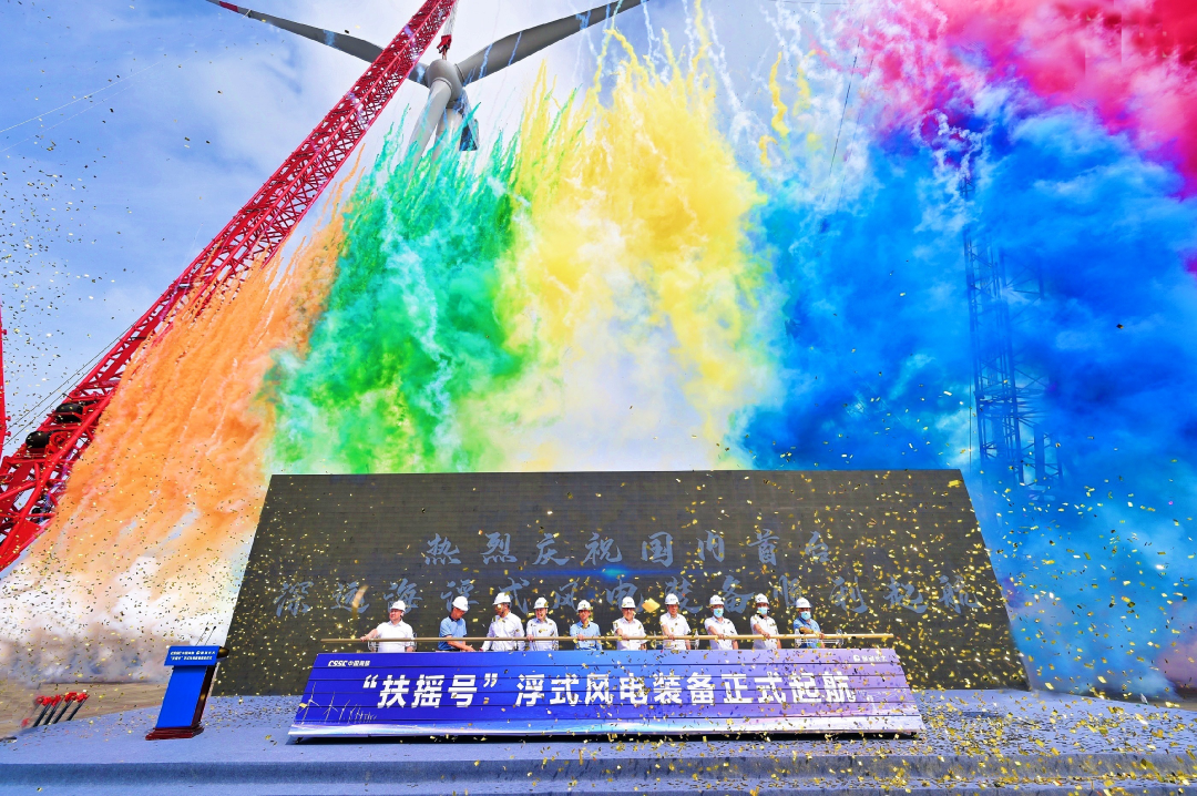 5月29日,中國(guó)船舶集團(tuán)旗下中國(guó)海裝牽頭研制的國(guó)內(nèi)首臺(tái)深遠(yuǎn)海浮式風(fēng)電裝備——“扶搖號(hào)”從廣東茂名碼頭起航,前往平均水深65米的廣東湛江附近海域投入示范應(yīng)用。